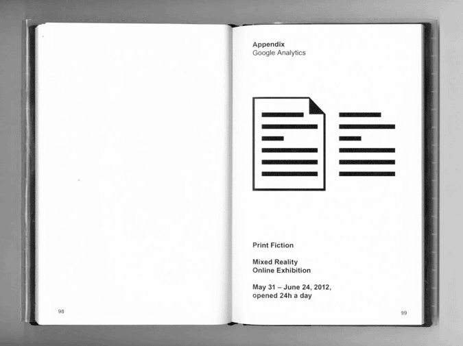 This exhibition-catalogue is a result of the first exhibition. It is a smallish abstract of an online exhibition, printed in grey-scale, due to the fact that there is no appropriate way to imitate the red-green-blue colour model of screen display.